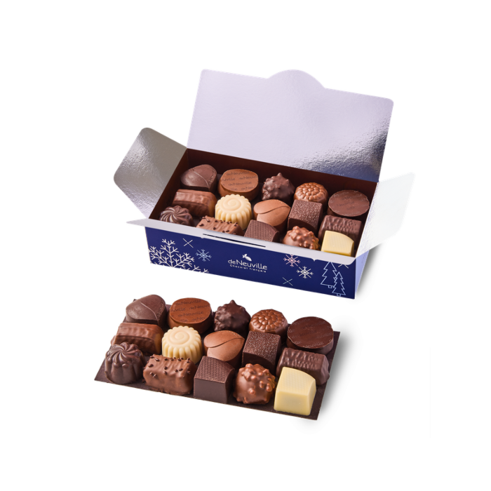 Chez De Neuville, la qualité de nos chocolats est au cœur de notre engagement. Pour les fêtes de fin d’année, découvrez notre collection exclusive de cadeaux d’entreprise, conçue pour sublimer vos relations professionnelles. Offrir un cadeau client ou un cadeau collaborateur signé De Neuville, c’est choisir l’élégance, la gourmandise et l’authenticité du savoir-faire chocolatier français. Nos coffrets raffinés sont pensés pour remercier vos clients, valoriser vos collaborateurs et marquer les esprits avec des cadeaux d’affaires uniques. Chaque création De Neuville est réalisée avec des ingrédients soigneusement sélectionnés, pour garantir une expérience gustative inoubliable à ceux qui comptent pour votre entreprise. Faites de chaque occasion un moment d’exception grâce à nos cadeaux d’entreprise personnalisés. Que ce soit pour remercier un client fidèle, célébrer une réussite d’équipe ou renforcer vos liens professionnels, nos chocolats De Neuville sont le choix idéal pour vos cadeaux clients et cadeaux collaborateurs.