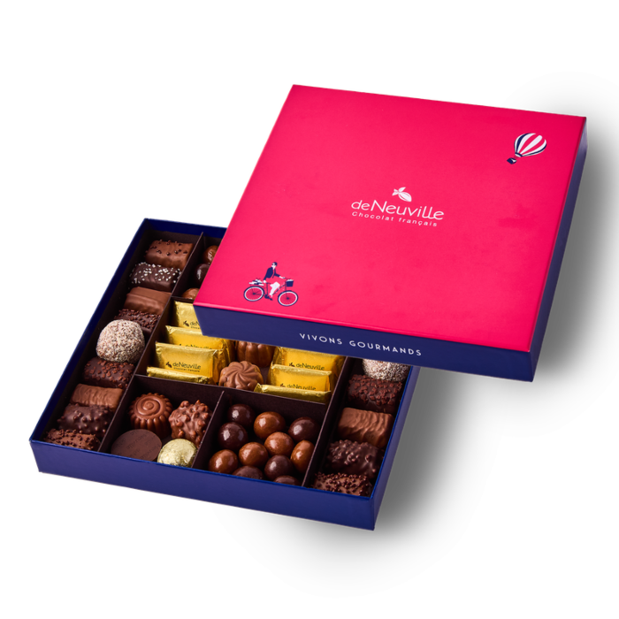 Chez De Neuville, la qualité de nos chocolats est au cœur de notre engagement. Pour les fêtes de fin d’année, découvrez notre collection exclusive de cadeaux d’entreprise, conçue pour sublimer vos relations professionnelles. Offrir un cadeau client ou un cadeau collaborateur signé De Neuville, c’est choisir l’élégance, la gourmandise et l’authenticité du savoir-faire chocolatier français. Nos coffrets raffinés sont pensés pour remercier vos clients, valoriser vos collaborateurs et marquer les esprits avec des cadeaux d’affaires uniques. Chaque création De Neuville est réalisée avec des ingrédients soigneusement sélectionnés, pour garantir une expérience gustative inoubliable à ceux qui comptent pour votre entreprise. Faites de chaque occasion un moment d’exception grâce à nos cadeaux d’entreprise personnalisés. Que ce soit pour remercier un client fidèle, célébrer une réussite d’équipe ou renforcer vos liens professionnels, nos chocolats De Neuville sont le choix idéal pour vos cadeaux clients et cadeaux collaborateurs.